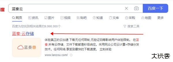 1、在电脑的百度上输入蓝奏云,找到其官方网站以后点击进入。