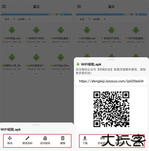 还能对云盘文件任意进行移动、编辑、设置密码,如果有需要还可以直接给好友分享直链,下载起来更方便。