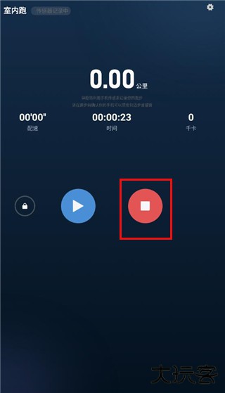 2、开始计时跑步,跑步结束长按红色按钮即可结束,即完成打卡
