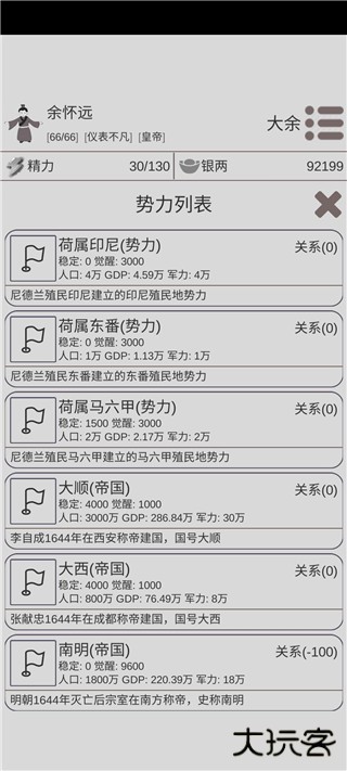 众所周知这游戏还是半成品,不仅bug多,很多功能也没做好,比如已经有南明了,大明还在,起义军也还在: