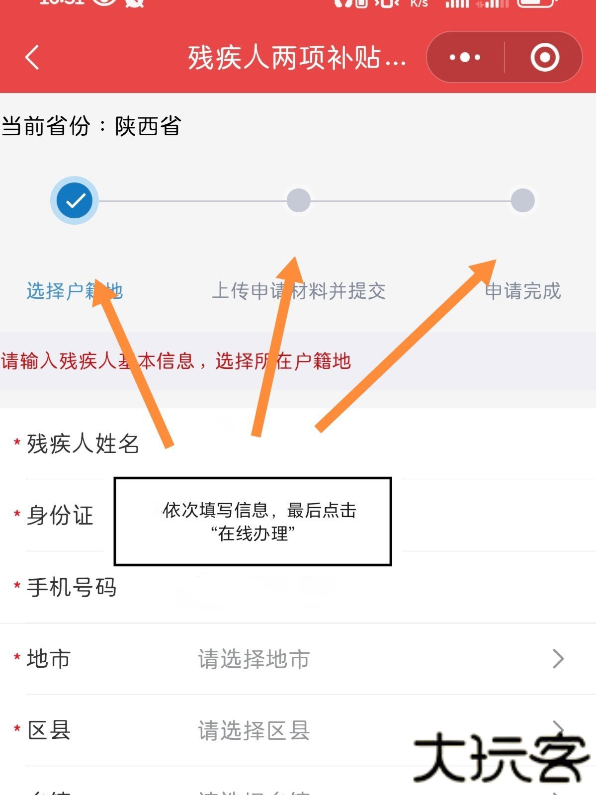 5、然后再填写一些详细的信息,填完之后点击“在线办理”即可。