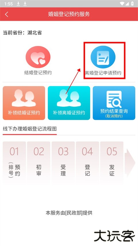 4、最后点击离婚登记申请预约即可。
