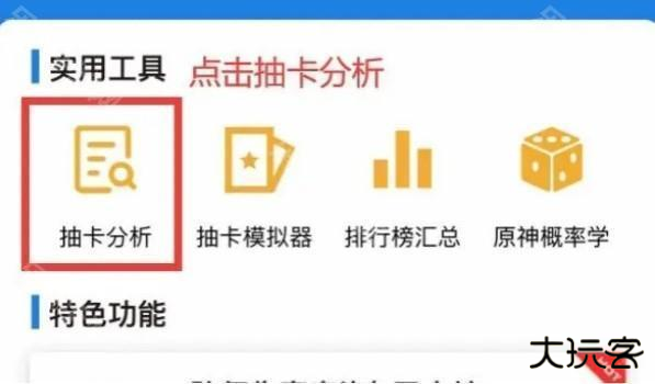 2、在提瓦特小助手的首页找到实用工具里面的抽卡分析并点击。