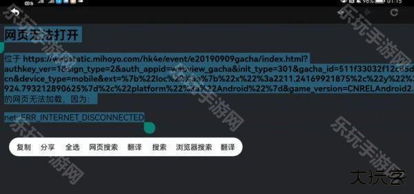 3、在原神登录后打开抽卡界面并断网,复制出现的代码。