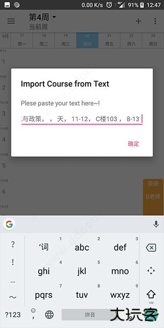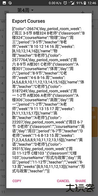 用Timetable导出课程得到的Json, 可分享给他人 或自己备份,粘贴该Json 至输入框便可导入
