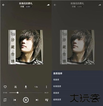 但是播放音乐却比蛋播音乐更好用,首先是音乐播放过程支持音质的选择,毕竟低音质和高音质听起来区别还是很大的。