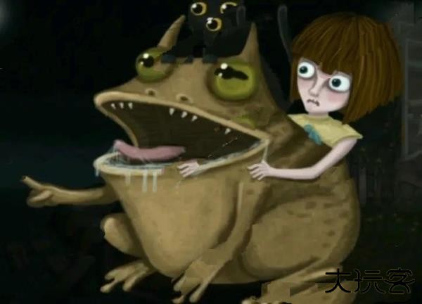 33、解救完猫咪之后下楼,点击窗户离开。之后点击青蛙进行对话。