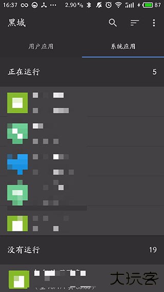 18、黑域还支持切断系统应用的运行,但是我们最好不要随便黑域我们的系统应用,避免系统出错。当黑域某个应用出现系统出错时,我们可以通过重启手机解决问题;