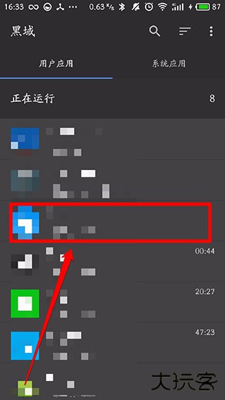 15、接着,我们就可以正常的进入黑域了,点击某个你想不让它后台运行的应用;