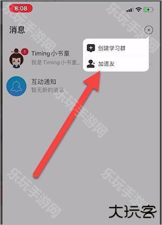 2、点击右上角的加号,选择加道友;