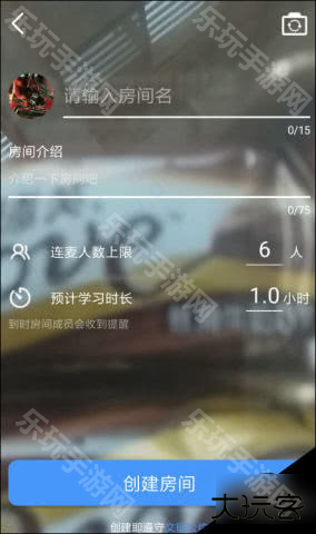 2、随后需要输入房间名称、简介内容,并且设置连麦的人数上限以及预计学习时长,通过底端按钮创建房间。