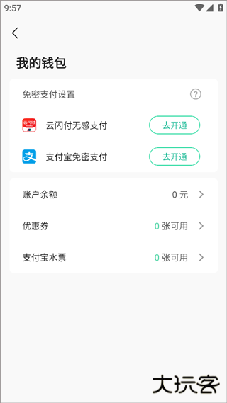 3、在我的页面中点击我的钱包,在免密支付中开通服务即可。