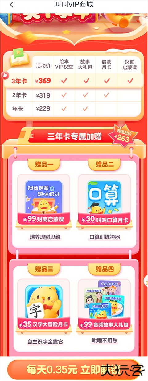 绘本年卡:229元 平均0.62元/天