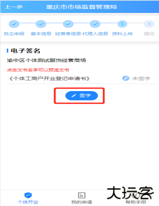如果当前经办人是经营者本人,直接点击签字 ,跳转到如下图界面,点击签字,完成后续签字即可
