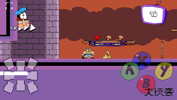 1、披萨塔是一款卡通风格快节奏平台动作冒险游戏,扮演滑稽的胖胖意大利中年男子;