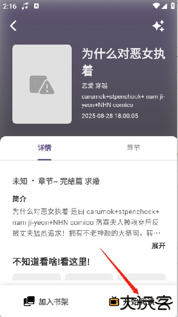 5、点击心仪的漫画进入详情页,查看简介、章节列表与用户评价,确认后点击【开始阅读】按钮。