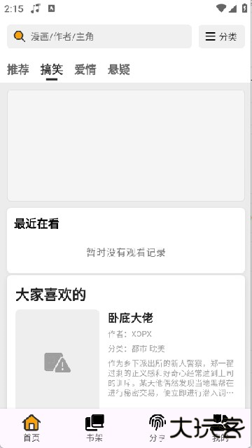 3、进入【分类】页面,漫画按题材精细划分,如玄幻、冒险、穿越、恋爱、悬疑、校园等,便于快速锁定感兴趣的内容。