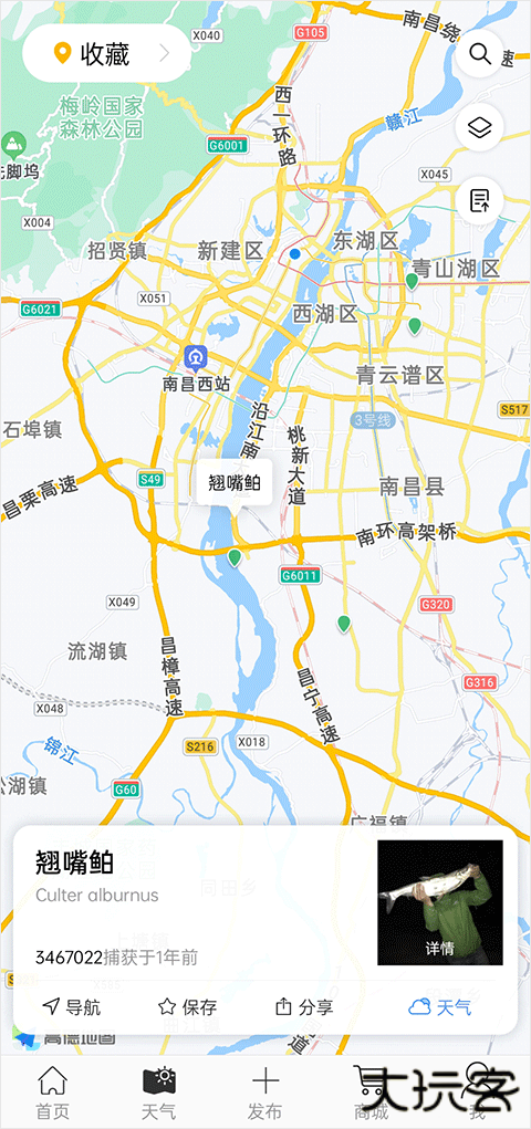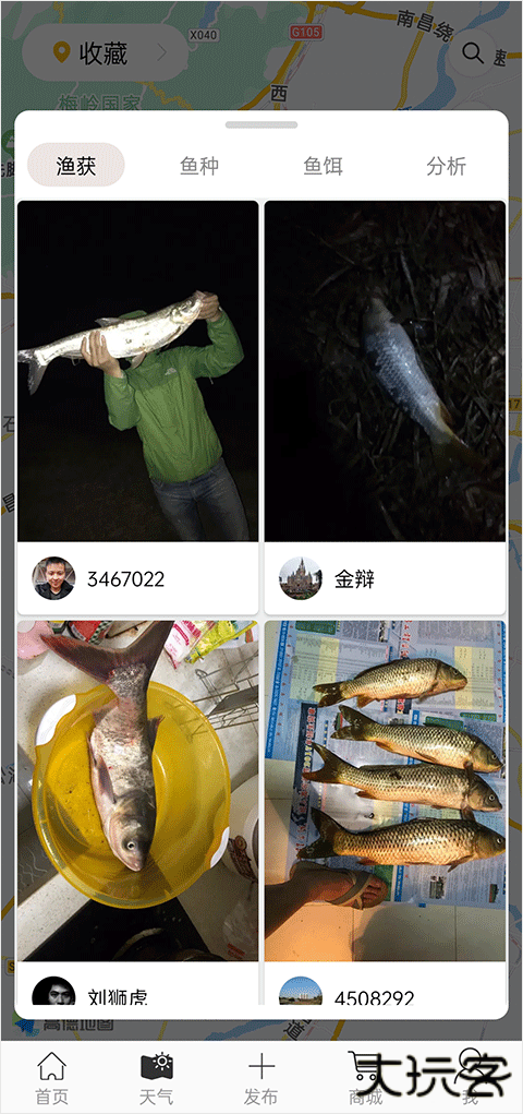 4、在app中可以看到钓友分享在什么地点钓到的鱼。