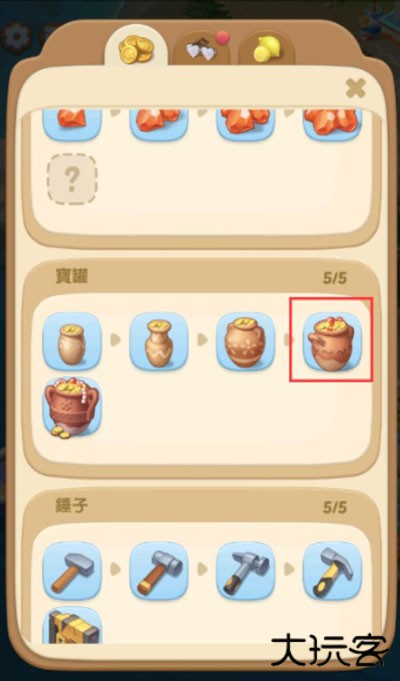 当宝罐达到四级后就有概率从宝罐中产出宝石