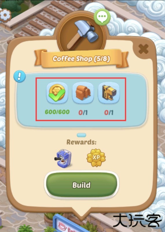 当你收集到一定数量的金币或者工具时,你可以点击相应的页面完成房屋建造