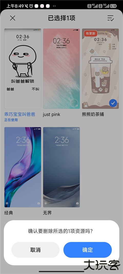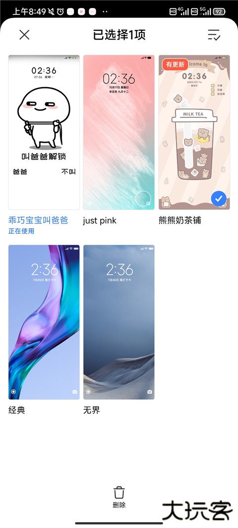 3、找到自己需要删除的主题进行长按。