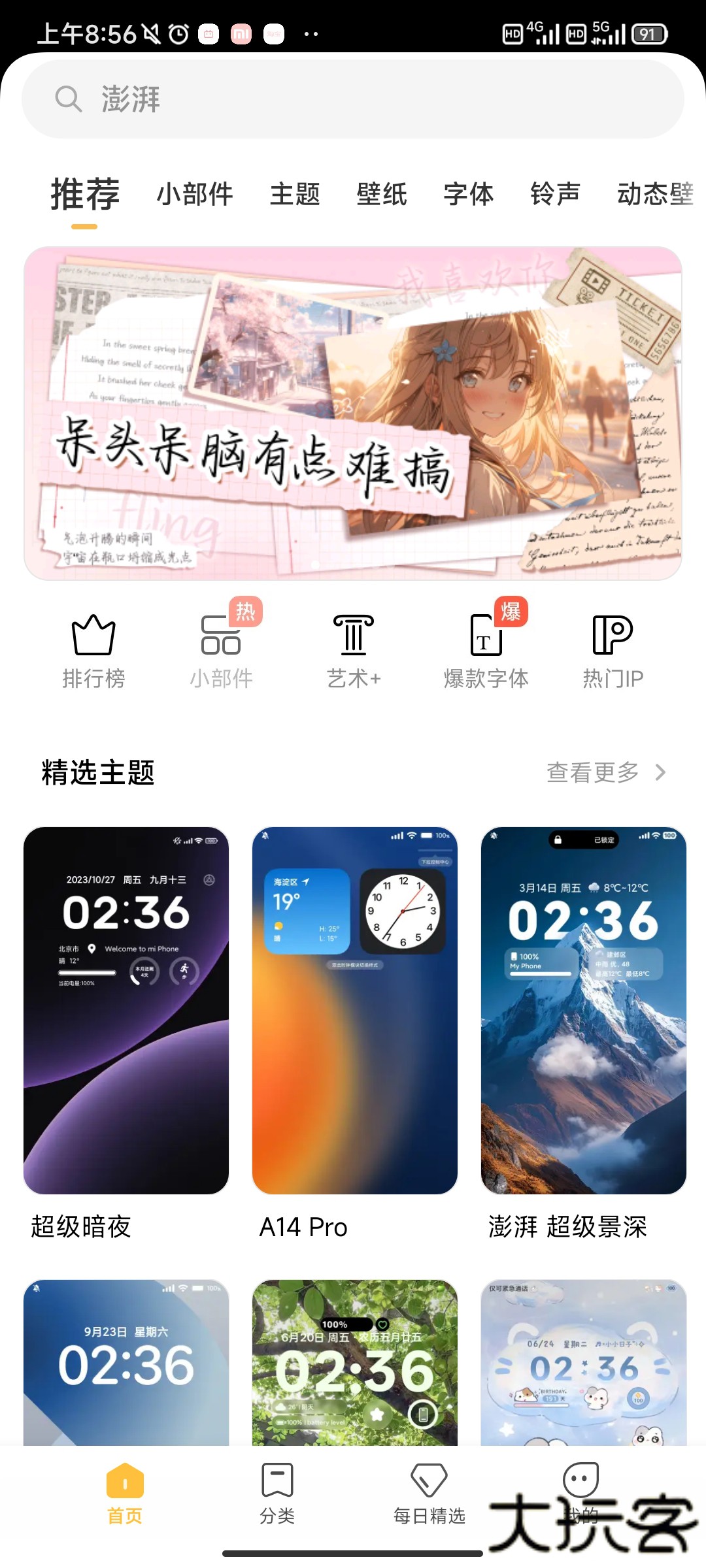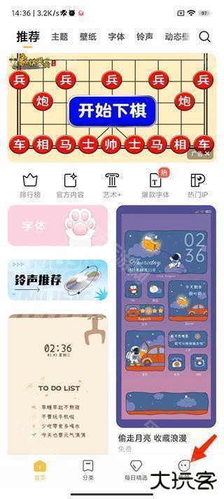 3、软件里面提供了各种免费壁纸、主题、字体等等资源能够让你进行使用,同时能够允许我们预览。