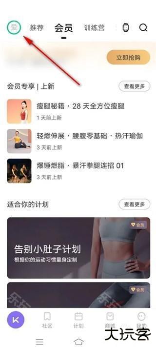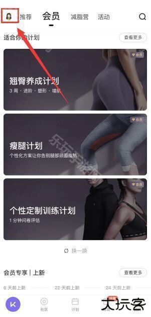 1、打开keep点击头像,在首界面中点击左上角的头像。