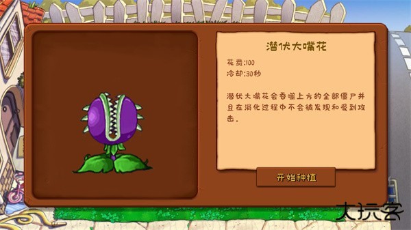 潜伏大嘴花会吞噬上方的全部僵尸并且在消化过程中不会被发现和受到攻击。