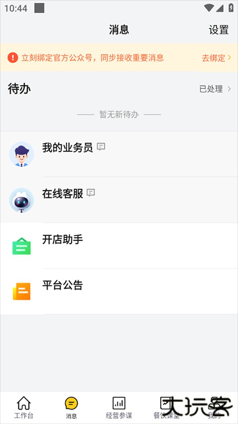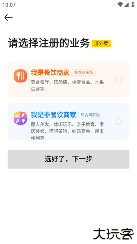 1、打开软件,如果你是新用户,则需要手机号注册登录,登录进去后有两个选项,这里小编选的是餐饮商家,如果你是其他类型的商家,则选择非餐饮商家,两个类型的商家用户在软件上的功能是类似的。