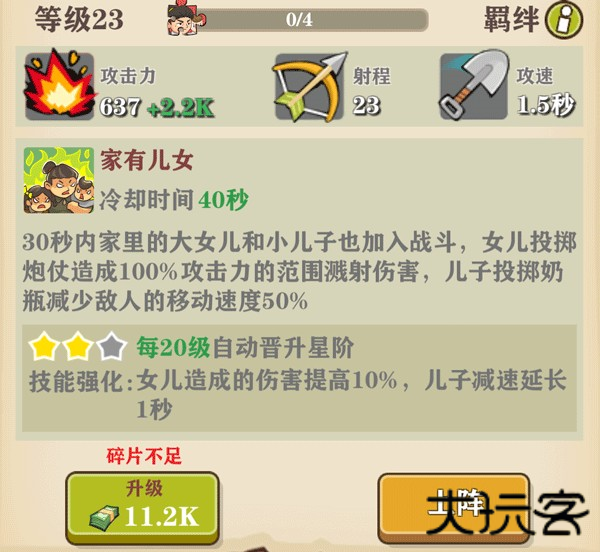 光解锁了角色还不行,因为我们遇到的敌人会越来越强大,所以你必须升级角色,使他变得更加强大,这样才能有效的抵御敌人。我们升级角色会用到角色碎片和金钱。升级角色会提升角色的攻击力,也会使角色技能效果有所提升。此外,每提升20级,技能将自动晋升星阶,目前暂时是3层星阶,也就是20级和40级的时候,技能效果将获得大幅增益哦~