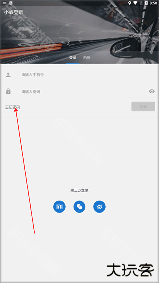 1、下载安装小蚁行车助手安卓版,点击忘记密码。