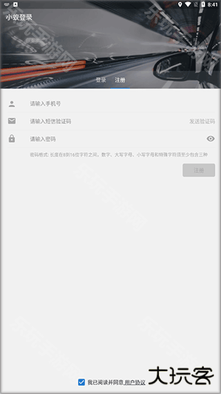 1、下载安装好小蚁行车助手安卓版,点击如图所示,进行注册。