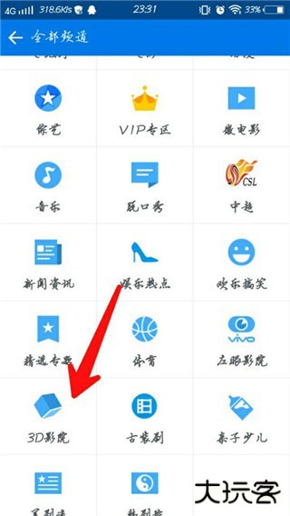2、然后找到3D影院,点击进入。
