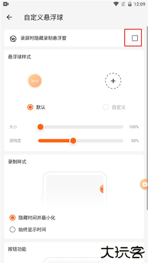 2、然后点击录屏时隐藏录制悬浮窗即可。