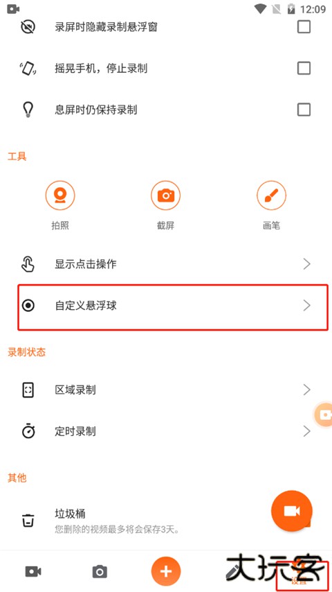 1、进入软件首页,点击设置按钮,然后在工具中选择自定义悬浮球;