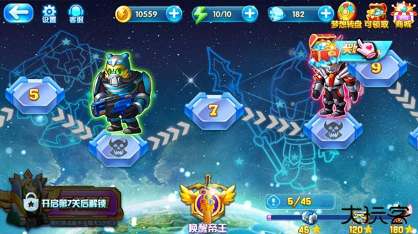 2、该游戏设立为闯关制,玩家可通过挑战其中的关卡来收集更多英雄碎片,从而能合成更多的英雄。而在往后的某些关卡中还有boss把守。