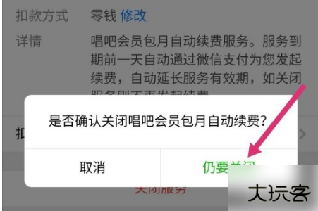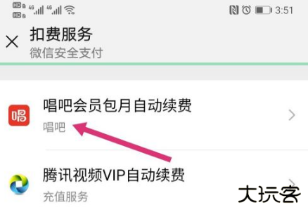 4、进入扣费服务后,点击唱吧会员包月自动续费。
