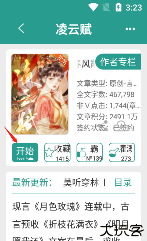 2、在这里找到你要下载的小说,然后点击进入小说作者专栏页面,点击开始阅读。