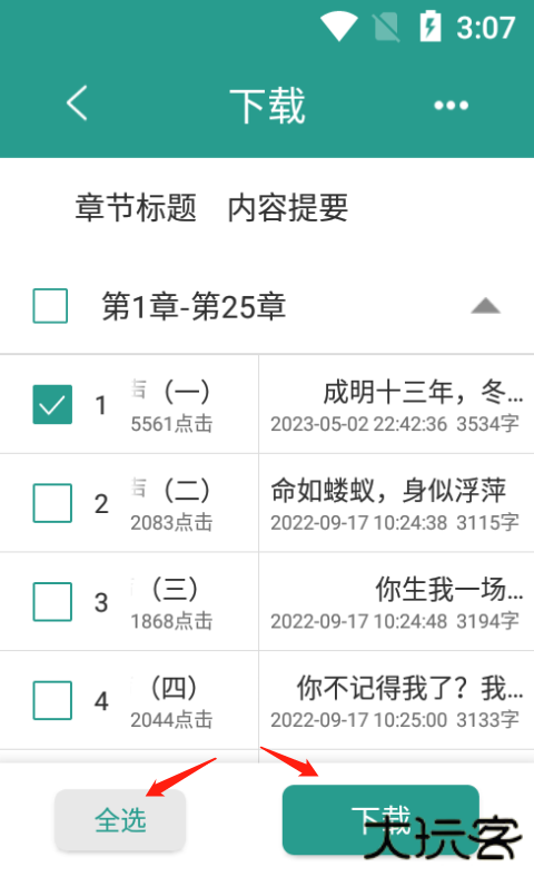 5、最后勾选出你要下载的章节,你也可以点击全选,选完之后点击下载即可。