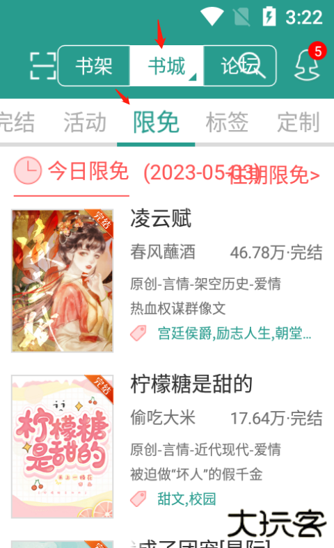 1、首先打开该app进入书城,点击限免。
