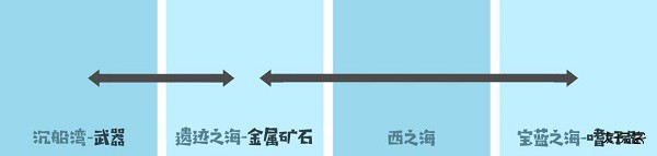 从沉船湾购买武器类商品贩卖到遗迹之海,再从遗迹之海购买金属矿石类商品贩卖到沉船湾。
