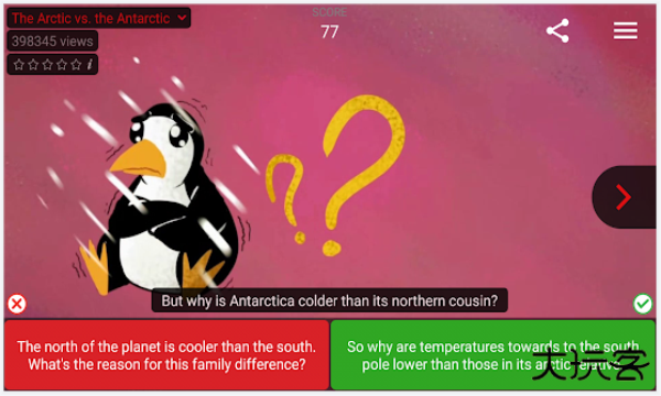 该app将电影中的一句或几句话截取出来,让大家进行听,然后根据自己是否能听清楚,可以选择有提示的选项和无提示的选项