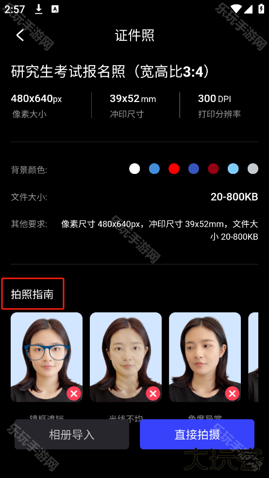 2、选择要拍摄的证件照类型