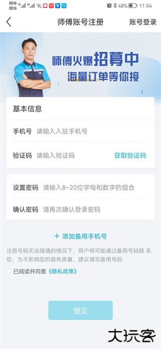3、进入技能中心,点击本人擅长得安装服务进入下一步,即可入住万师傅。