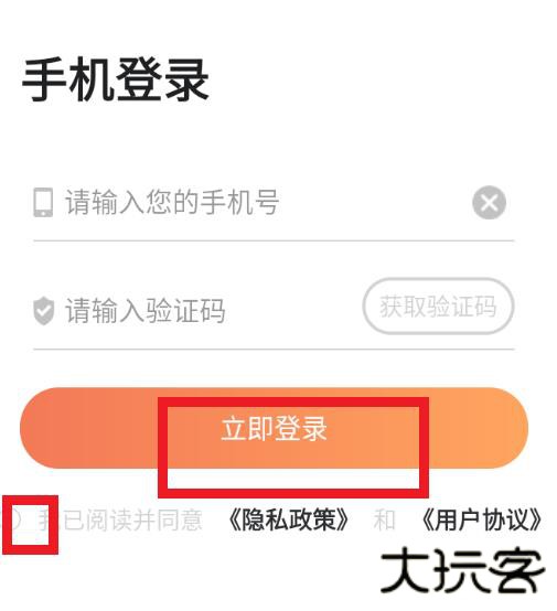 输入手机号码和验证码点击同意点击登陆即可