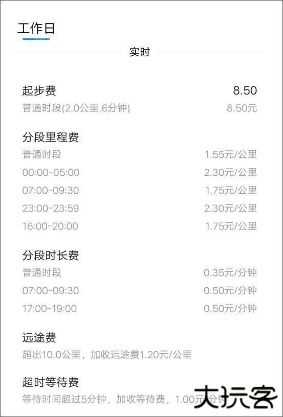 2、在工作日时,及时用车app快车预约用车价格如下方式计算:
