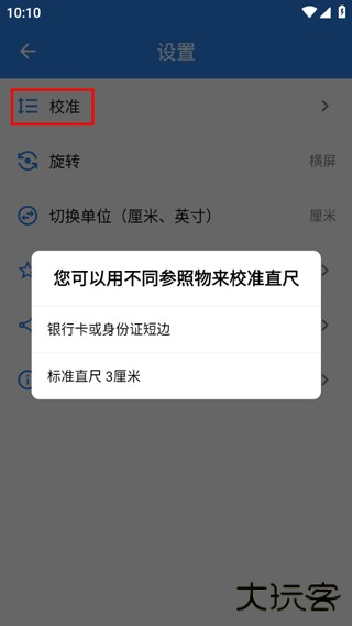 3、滑动到页面的最后一个点击进入,可以看到有校准,可以用不同的参照物来进行校准