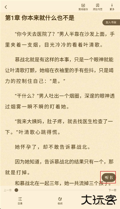 1、进入小说阅读界面,点击右上角的选项选择听书;