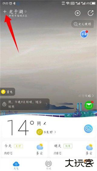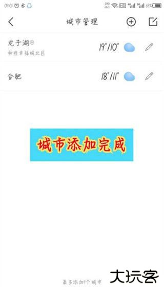 2、在新页面里点击右上角的“+”打开添加城市页面
