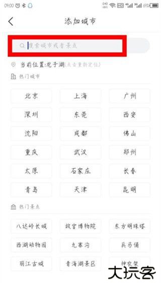 3、在下面点击城市名称或是在搜索框里输入